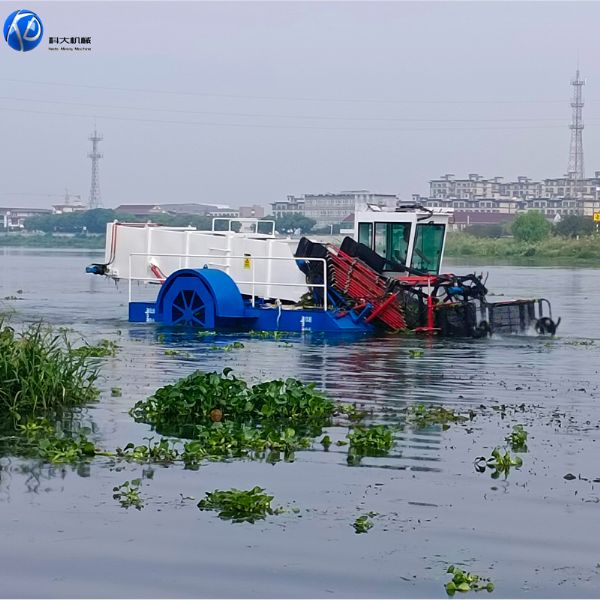 全自動水面保潔船發(fā)貨至印尼,全自動水面保潔船也叫作割草船,蘆葦收割船、水葫蘆打撈船,用于收割打撈水面水草、水葫蘆、水面垃圾等
