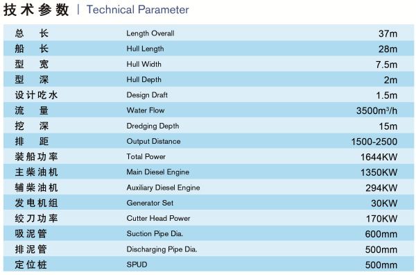 絞吸式挖泥船: 是在疏灘工程中運(yùn)用較廣泛的一種船舶,它是利用吸水管前端圍繞吸水管裝設(shè)旋轉(zhuǎn)絞頭裝置,將河底泥沙進(jìn)行切割和攪動,再經(jīng)吸泥管將絞起的泥沙物料,借助強(qiáng)大的泵力,輸送到泥沙物料堆積場,它的挖泥、運(yùn)泥、卸泥等工作過程,可以一次連續(xù)完成,它是一種效率高、成本較低的挖泥船,是良好的水下挖掘機(jī)械。